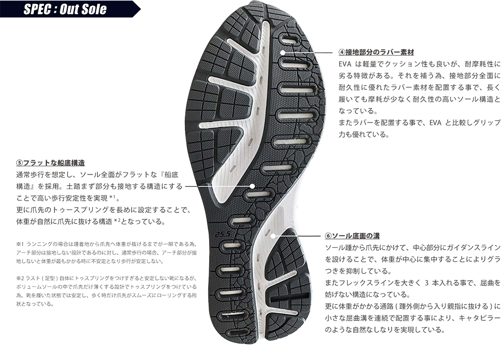 さらに特筆すべきは、アッパーだけでなく靴底からも空気と水蒸気を逃がす構造を備えている点。