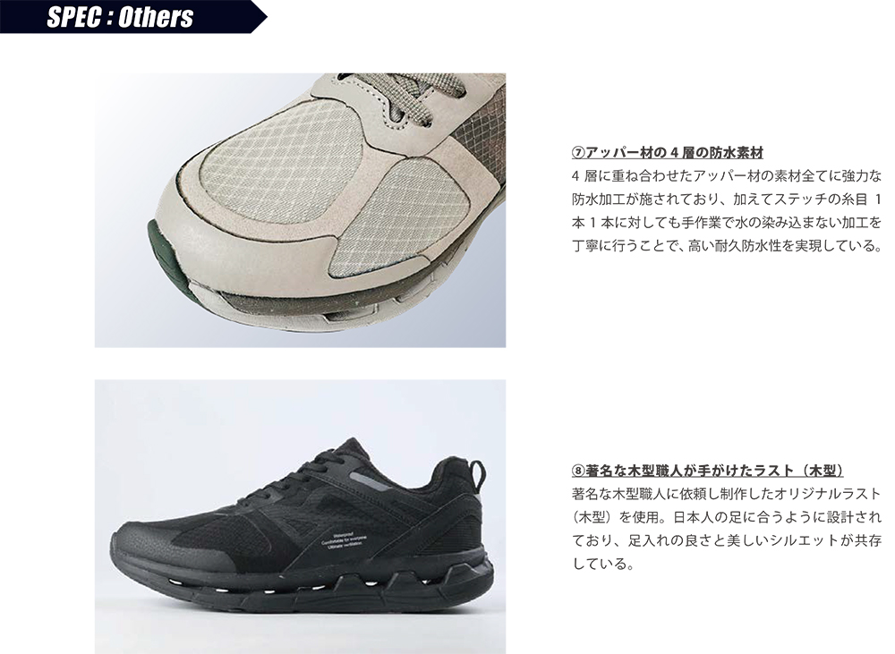 これにより、晴れの日はもちろん、雨の日でも快適な履き心地を実現しています。